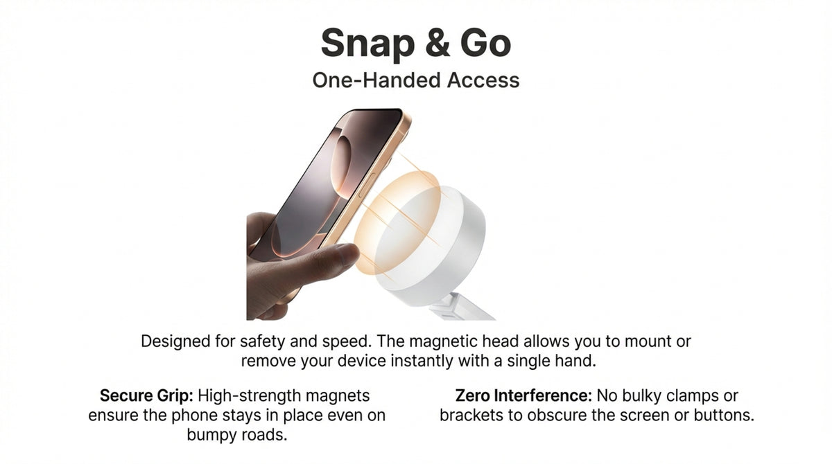 Simply place the holder on a smooth, flat surface, twist to create a vacuum seal, and your phone is secure. The quick-release button allows for effortless removal. For non-magnetic phones, attach the included metal ring and wait 24 hours for maximum adhesion.